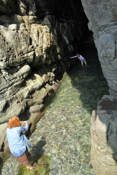 After the temple and a quick nap in the grass, we headed to the small island of Odongdo (named for the Odong tree leaf it resembles). When I say small, I mean we took our time walking around the whole thing in less than two hours. There are many designated areas around the island with some catchy names. The first to catch our eye was “Dragon Cave.” I was feeling brave enough to shimmy down the rock into the water and walk a little ways into the cave before it got too dark and filled with trash and lots of rusted metal (no idea).