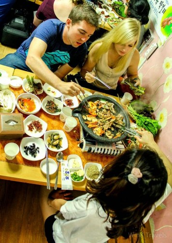 For our overnight in Jeonju, a big group of us headed to a local restaurant for dalk galbi (spicy chicken stir fry). There was an option to add cheese and ramen, which of course we did. There is no better way to bond with strangers than an adventure followed by a scrumptious meal. The beer and soju (Korean liquor) was flowing and being passed around tables, which was a clear indication the night wouldn’t be ending anytime soon. The majority of us ended up at a tiny bar playing familiar nostalgic tunes and we danced until the wee hours of the morning.
