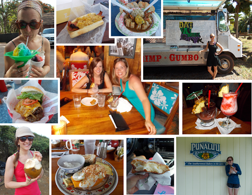 | Left to right: My family enjoying our fresh fish; the hard-working chefs in their tiny kitchen. |