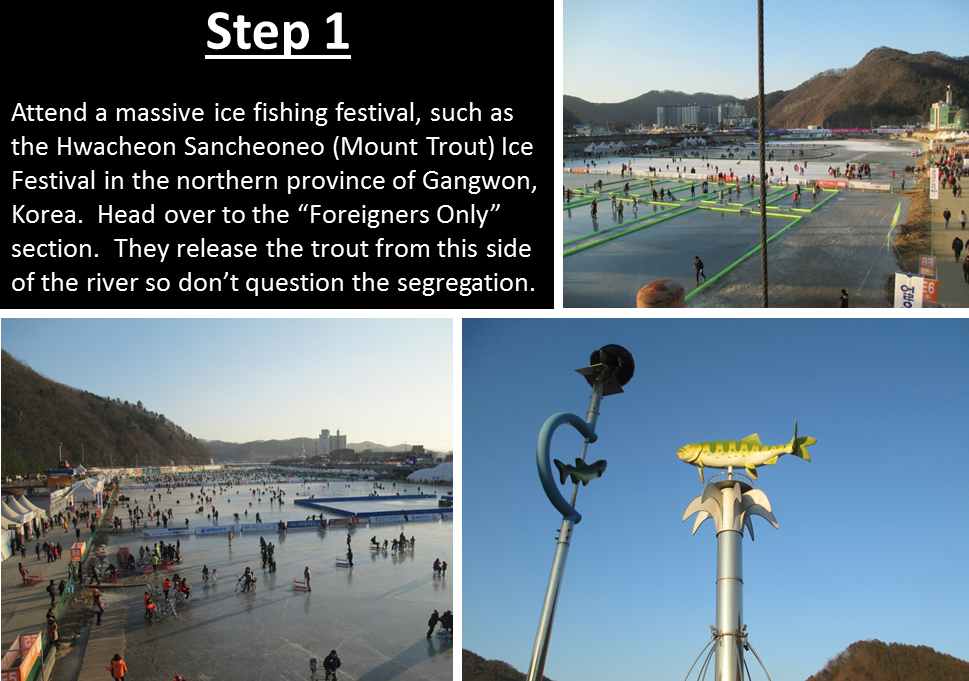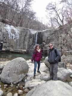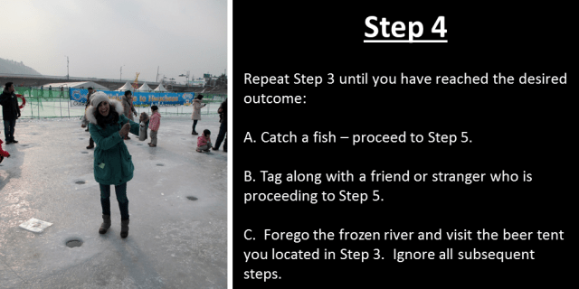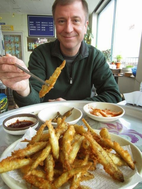 Chuncheon (pronounced choon-chun) is a small city about two hours north of Seoul by train. We took a day trip here in order to visit one of Korea’s more remote temples, Cheongpyeong Temple. Along the way, we were told to try the wintertime specialty of “ice fish” tempura. Even though we’d had our fair share of Japanese tempura, this wasn’t exactly what we were expecting.