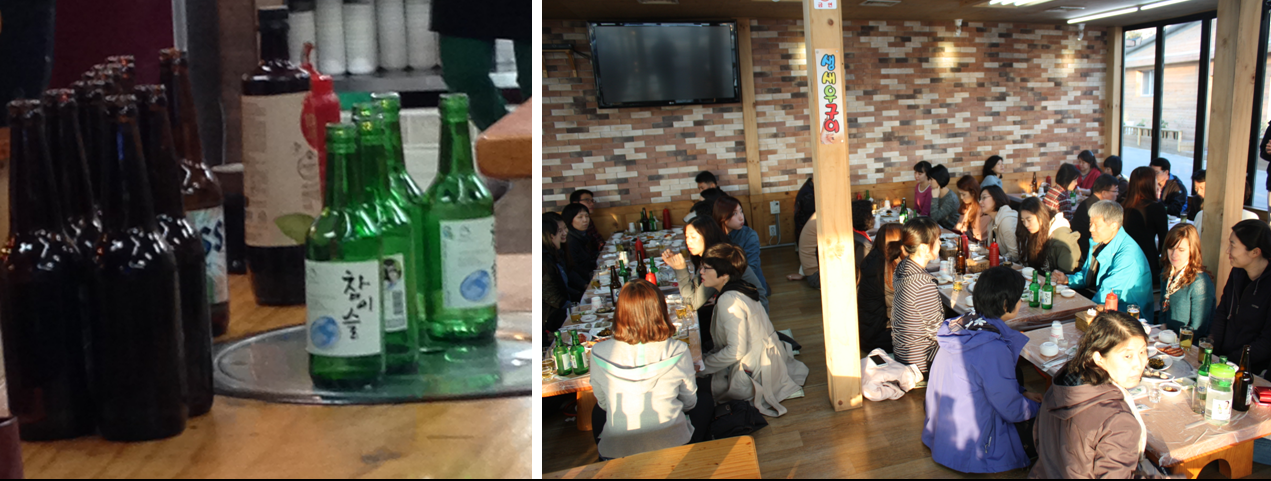 The players assembled formation around the seaside restaurant tables in typical floor-seating fashion. Drinks of Korean beer and liquor were distributed and the team’s MVP (most valued principal) gave the toast to signal the start of Round 2.