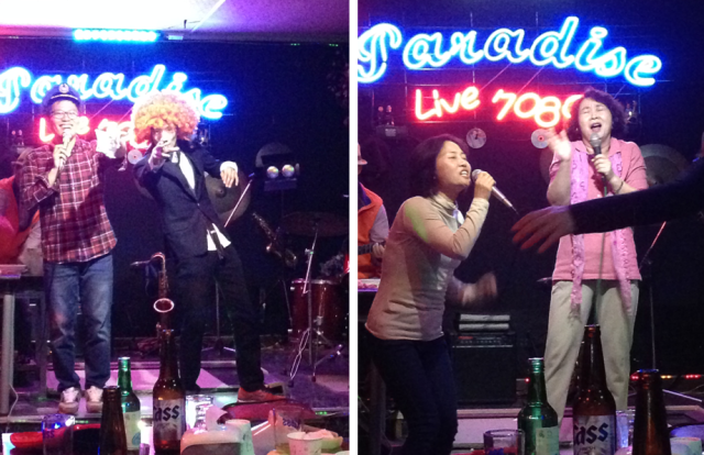 Korean BBQ restaurants always embody a fun atmosphere, the guests’ intents being to share a delicious meal and drink to the heart’s content. Soju and beer flows freely here, especially in an area high in nightlife like Gangnam, where the night is bound to continue a few rounds after dinner. In order to give my parents a dose of said nightlife, I took them to a norebang (pronounce “no-ray-bong”), a private singing room. It’s like karaoke, but you share a room with only a small number of friends you’re willing to embarrass yourself in front of. So. Much. FUN!!!!