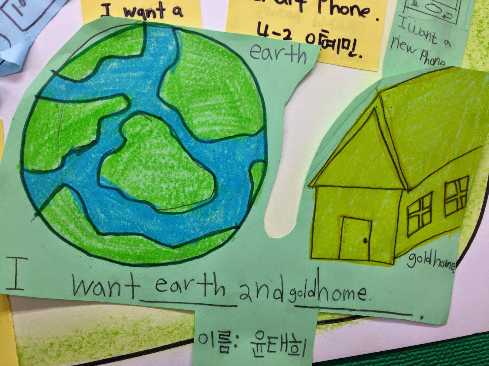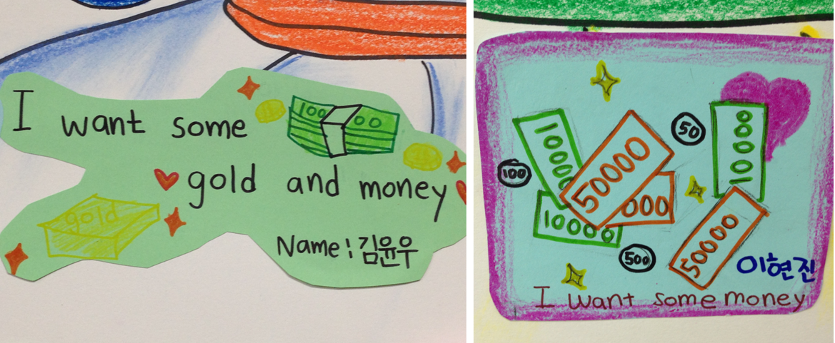 This semester, one of my fourth grade lessons was learning the phrase, “I want _______.” My Korean co-teacher introduced the idea of bokjumeoni to me and we thought it would be a great theme for the lesson. We finished up the chapter with an art project. Students could write down and decorate their wishes and glue it inside the “lucky bag” picture to make it come true. It was a really fun activity and interesting to see the desires of Korean fourth graders.
