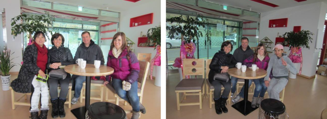| Left: Some caffeinated players; Right: the two English-teaching teammates. |