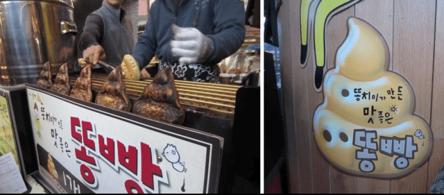 | It’s exactly what it looks like: “dung bread.” Don’t worry, only the shape gives the treat its name. Sweet red beans are wrapped in the fried dough. |