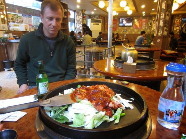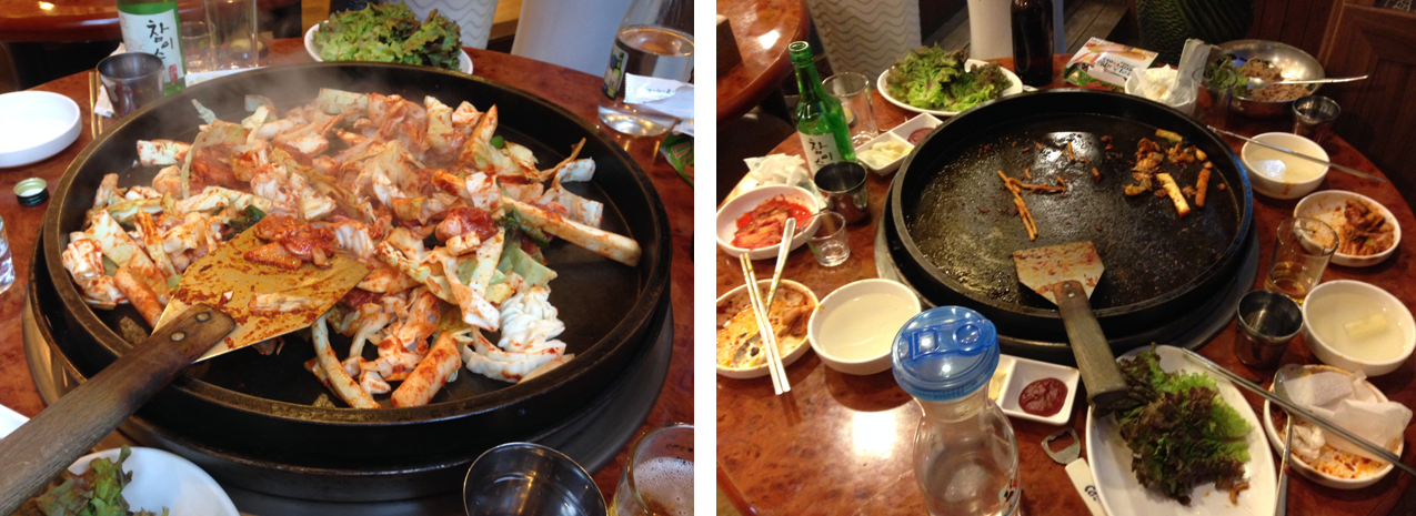 Before heading back to Seoul, we took our time within the city of Chuncheon to try the city’s specialty: “dalk galbi”, which loosely translates to marinated chicken. Since the city is full of restaurants serving this dish, we were just planning on wandering into the first place we saw. However, thanks to our friendly cab driver, we were escorted to a local favorite. I can’t compare it to what we would have found on our own, but I owe that cab driver more than taxi fare for giving me the best meal I’ve ever had in Korea. Allow me to make your mouth water: