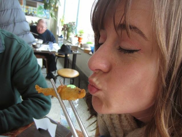 Not wanting to disrespect our hosts who were anxiously awaiting our order, I did some frantic translating of the menu to figure out which of the items was the battered and deep-fried tempura fish we were looking for. With about 80% certainty, we placed our order and were more than relieved when our dead, golden fishies arrived. The fish were small enough to just pop in your mouth. The texture of their tiny bones and fins is a little surprising, but I found them quite enjoyable. The bigger, the better!