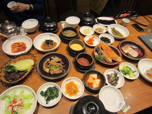 At a traditional Korean meal, the table is adorned in numerous side dishes for all guests at the table to share. These side dishes are known as a whole are called panchan. Sometimes panchan accompanies a main dish and sometimes it is served alone, tapas style. Typically, at traditional Korean restaurants, you’re seated on the floor at a low table. Comfortable for about five minutes, but the food is usually worth losing feeling in your toes. My parents and I were fortunate to sample several traditional Korean meals when we met up with Korean friends and co-workers of mine.