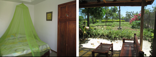 | My humble room complete with a mosquito-netted bed, and my personal patio on the right. |