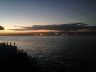 | Talima’s view at sunset; the lights of Cebu City in the distance. |